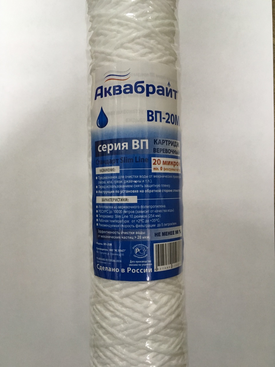 Картридж из веревочного полипропилена для мех. очистки 10BB ,20 мкр. ВП-20 М-10ББ