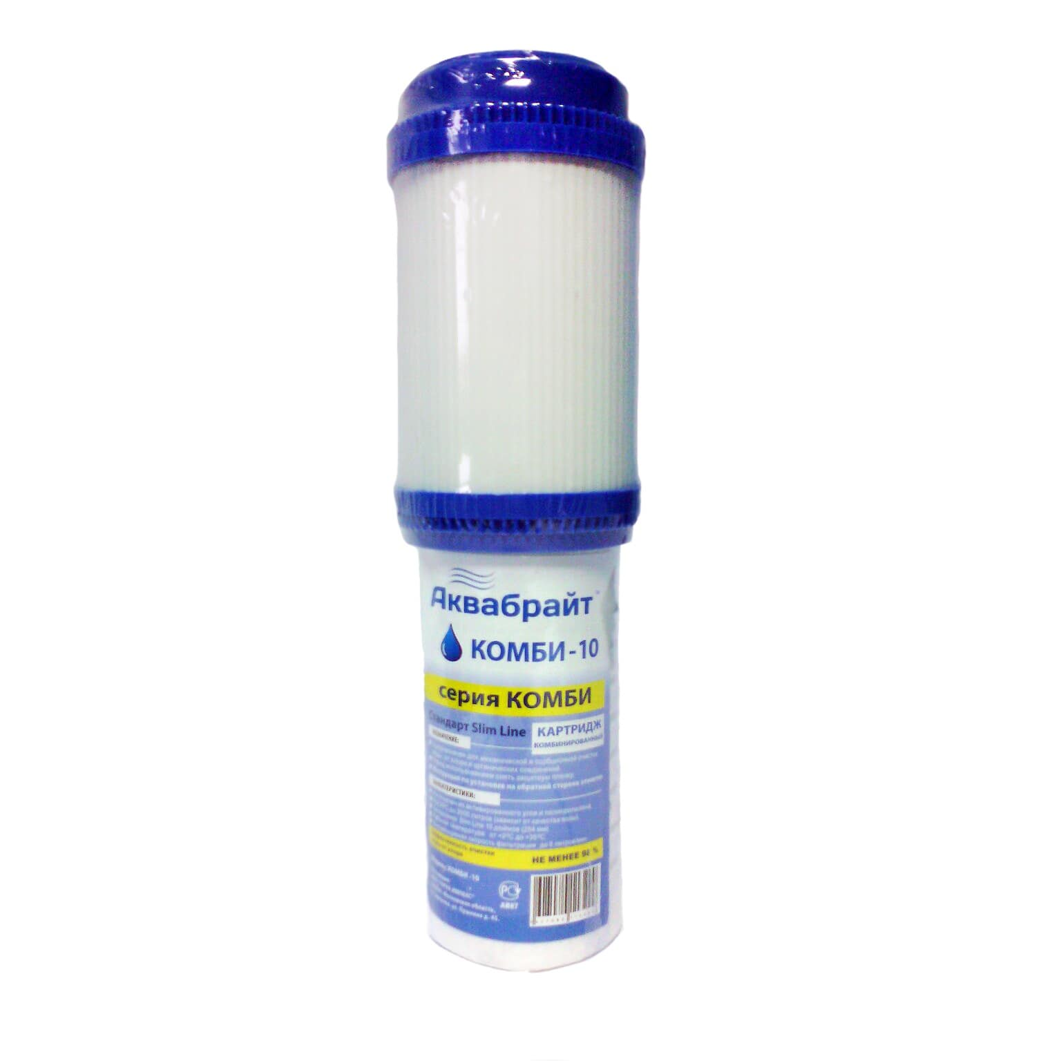 Картридж КОМБИ для мех. и сорбц. очистки SLIM 10" (Ресурс 3000литров) КОМБИ-10 (Аквабрайт)