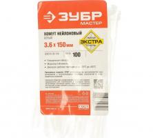 Кабельные стяжки белые КС-Б1, 3.6 x 150 мм, 100 шт, нейлоновые, ЗУБР Профессионал