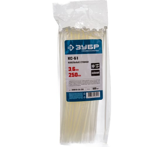 Хомут нейлон белый 3,6x250мм 309010-36-250 100шт