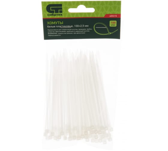 Хомуты, 100 х 2,5 мм, пластиковые, белые, 100 шт.// Сибртех