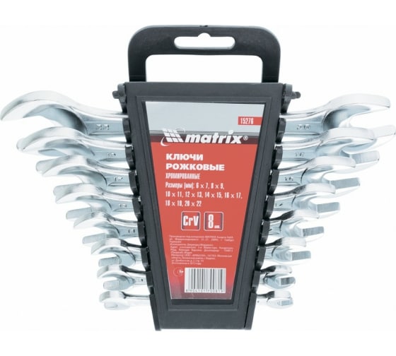 Набор ключей рожковых, 6 х 22 мм, 8 шт., CrV, хромированные// Matrix