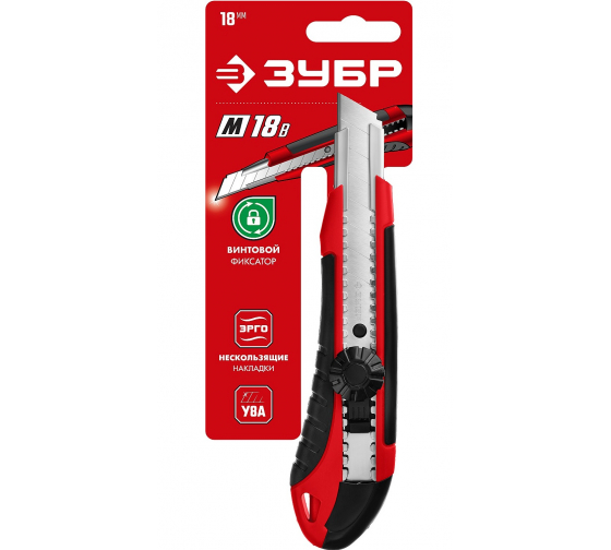 Нож с винтовым фиксатором М-18В, сегмент. лезвия 18 мм, ЗУБР