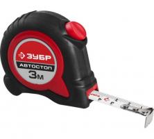 ЗУБР АВТОСТОП 3м / 16мм рулетка с автостопом и ударостойким обрезиненным корпусом