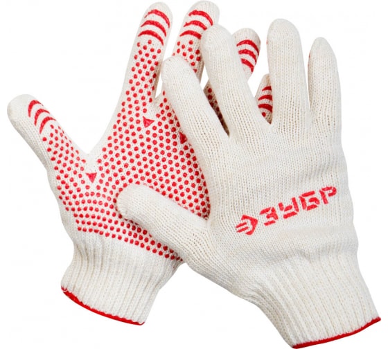 ЗУБР МАСТЕР, размер L-XL, перчатки для тяжелых работ, х/б 7 класс, с ПВХ-гель покрытием (точка)
