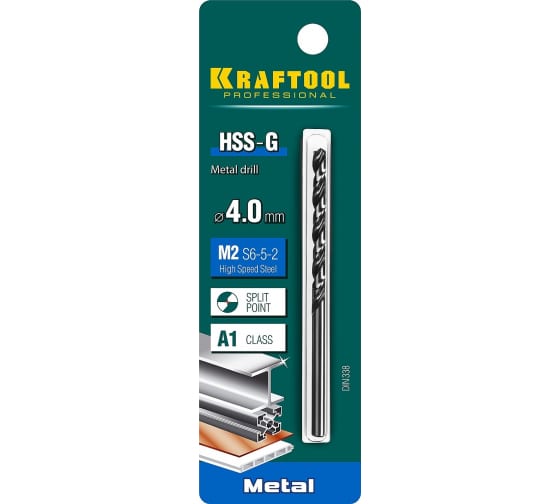 KRAFTOOL HSS-G 4.0 х75мм, Сверло по металлу HSS-G, сталь М2(S6-5-2)