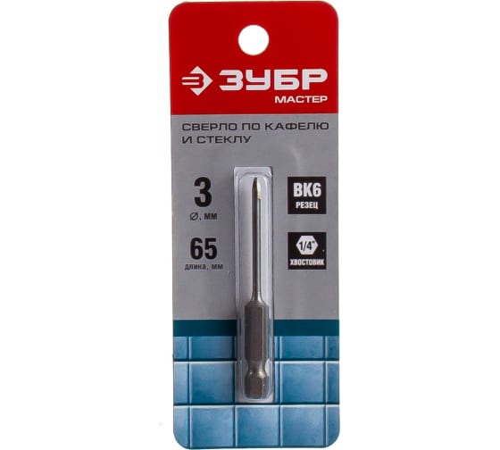 Сверло по кафелю, керамике, стеклу, с двумя режущими лезвиями, шестигранный хвостовик, 3 мм, ЗУБР 29