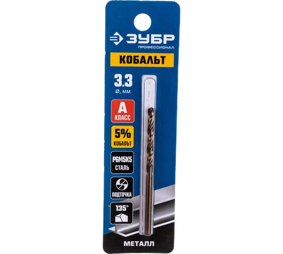 ЗУБР КОБАЛЬТ 3.3х65мм, Сверло по металлу, сталь Р6М5, класс А
