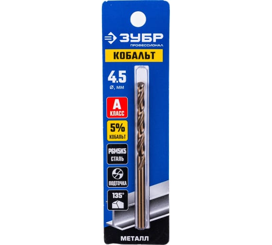 ЗУБР КОБАЛЬТ 4.5х80мм, Сверло по металлу, сталь Р6М5, класс А