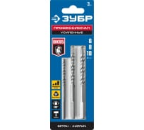 ЗУБР ПРОФЕССИОНАЛ 3 шт: d 6-8-10 мм набор сверл по бетону усиленных, 3-х гранный хвостовик