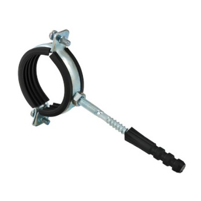 (RUS.833) Стальной кронштейн используется в качестве неподвижной опоры при креплении к несущей поверхности труб из различных материалов и представляет собой снабженный резиновым уплотнением металлический хомут с гайкой, болтом и дюбелем.¶¶Металлические детали хомута – корпус, приварная гайка, винты – выполнены из стали и защищены от коррозии цинкованием, которое осуществляется на автоматической линии с использованием современных добавок, что дает стабильное, стойкое покрытие и блеск, обеспечивает возможность использование хомута в помещениях с повышенной влажностью. Для усиления конструкции число ребер жесткости увеличено до четырех; сверхпрочное сварное соединение обеспечивает надежный контакт гайки и хомута. Отсутствие острых кромок гарантирует безопасное и удобное использование кронштейна, увеличенная выточка под винты – дополнительную прочность крепления.
