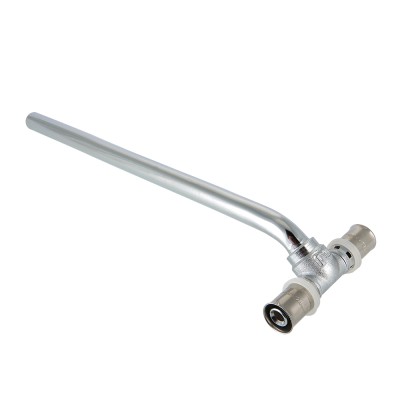 (VTm.282.N) Пресс-фитинг – тройник с хромированной латунной трубкой (наружный диаметр – 15, толщина стенки – 1 мм), предназначенный для подключения отопительного прибора к разводке из металлополимерных труб.