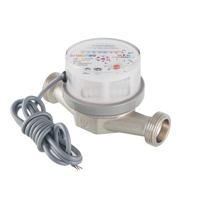 (VLF-15U-IL) Водосчетчик универсальный – для измерения расхода холодной и горячей воды, главным образом – в квартирах. Условный диаметр модели – 1/2"; номинальный расход воды – 1,5 куб. м/ч. Длина прибора – 80 мм. Резьба присоединительных патрубков – 3/4". Наличие импульсного выхода позволяет организовать дистанционное считывание показаний. Для данной модели установлен увеличенный межповерочный интервал – 6 лет (на холодную и горячую воду).