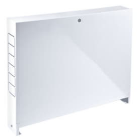 (VTc.541.0) Пристраиваемые коллекторные шкафы (распределительные шкафы) VALTEC VTc.541 предназначены для размещения в них коллекторов и коллекторных блоков систем внутреннего водопровода и отопления. Установка шкафа – пристенная. Детали шкафов коллекторных VALTEC выполнены из оцинкованной стали. Лицевые поверхности окрашены порошковой эмалью цвета RAL 9016 с предварительной фосфатной подготовкой поверхности. В боковых стенках корпуса выполнена перфорация, сегменты которой удаляются в месте, удобном для пропуска присоединяемых трубопроводов. Выдвижные ножки дают возможность регулировать высоту шкафа от 651 до 691 мм. Ножки имеют отверстия для крепления шкафа к полу.