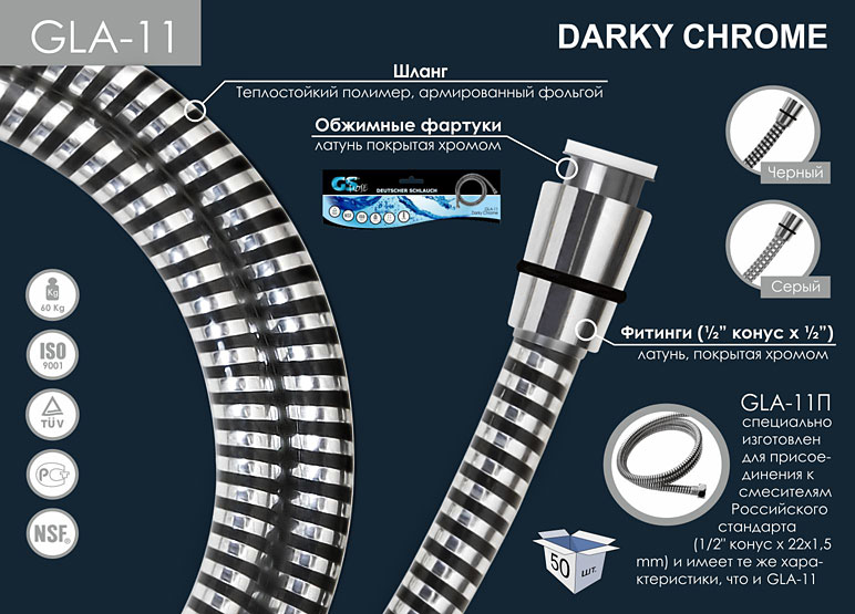 GLA-11 Black П Шланг виниловый 1,5м. рус/имп кон.св.вращ. чёрный Silver GS