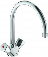 "Практик" смеситель для кухни двуручковый, трубчатый излив, хром