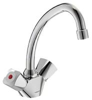 "Тринити" смеситель для кухонной мойки двуручковый, трубчатый поворотный излив, с пластиковой монтаж