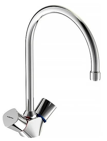 "Квадро" смеситель для кухни двуручковый, трубчатый излив 200мм, гибкая G3/8, хром