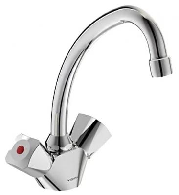 "Практик" смеситель для кухни двуручковый, трубчатый излив, хром
