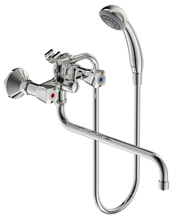 "Практик" смеситель для ванны двуручковый, излив 320 мм, хром
