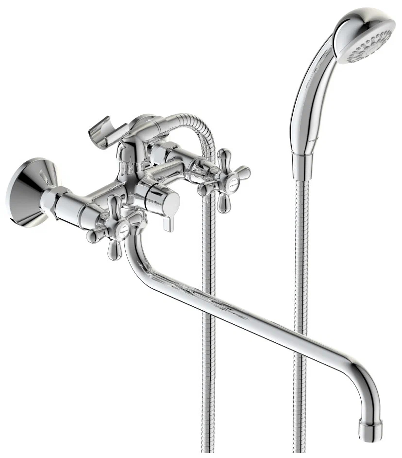"Ретро" смеситель для ванны, излив 320 мм, керамический переключатель, хром