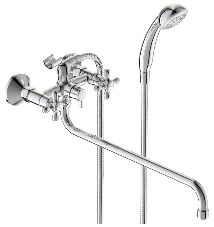 "Ретро" смеситель для ванны, излив 400 мм, керамический переключатель, хром