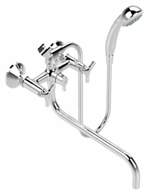 "Тринити" смеситель для ванны/душа двуручковый, настенный, с керамическим переключателем, трубчатый