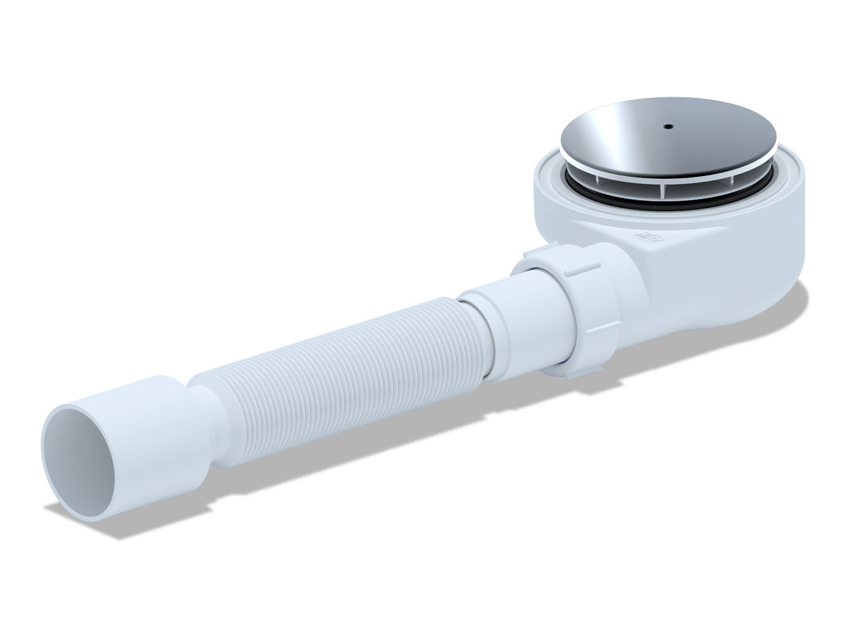 Сифон АНИ для душевого поддона 1 1/2"*60, h53мм, хром, с гибкой трубой 375*40/50 E555C