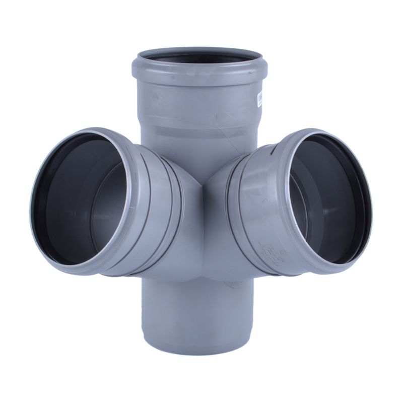 Диаметр дополнительного ответвления может быть равен диаметру основного трубопровода, например, крестовина 50х50х50/45, или меньше его - крестовина 110х50х50/90. В дробной части обозначения крестовины указывается угол отвода дополнительного ответвления (45о или 90о).